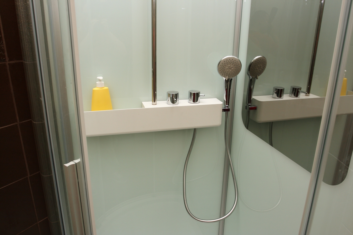 В общей ванной комнате вы найдете раковину и «тропический душ» (душевая и туалет раздельные).
